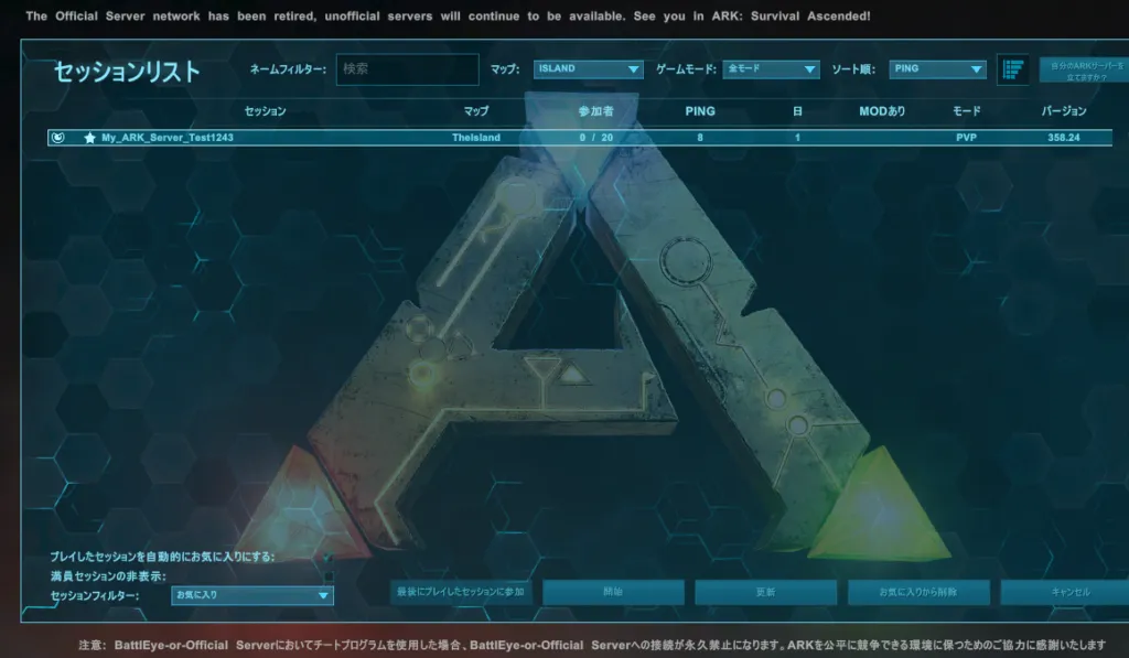 ※サーバーを停止していた場合等、起動まで10分程度必要です。