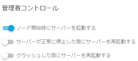 管理者コントロールの項目で、ノード開始時にサーバーを起動するを有効にするだけです。