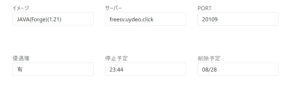 接続サーバーです。たまに変更になる可能性があります