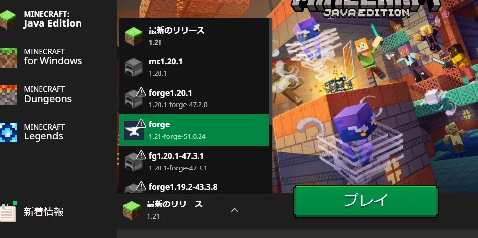 Forge1.21に対応したModを入れてみます。