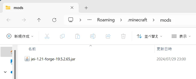 パソコン側の保存場所を開き、ダウンロードしたModを格納します。