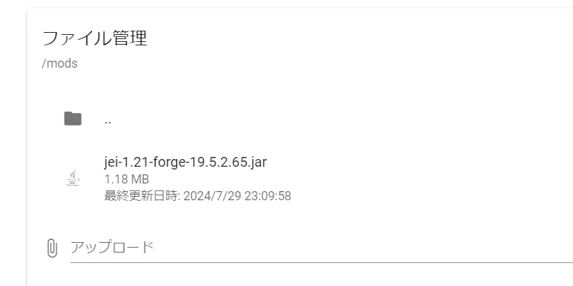 mods画面でModファイルをアップロードします。