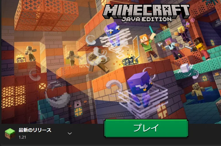 通常の起動方法と同じくランチャーよりJava版のマイクラを立ち上げます。
