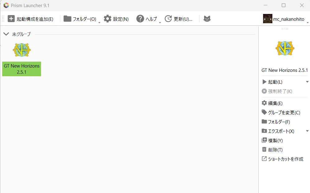 PrismLancherを起動したら、起動構成を追加をクリックしてください。