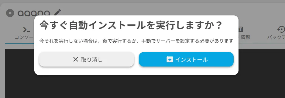 作成を進めると、自動インストールの確認画面が表示されるので、クリックして開始します。