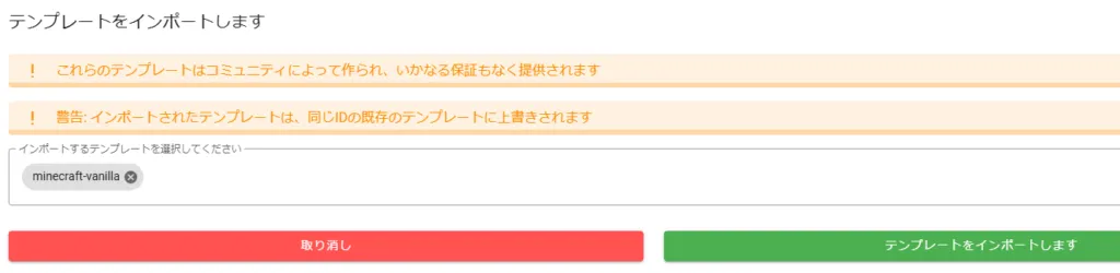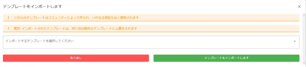 複数個まとめて登録可能です。選択が完了したらテンプレートをインポートします をクリックして導入完了です。