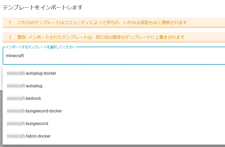 クリック後、既に一覧が表示されている場合、初期値で導入が完了している環境となります。kym gameの場合、利用しているイメージのテンプレートが templatedの場合、直ぐに遊び始めれるよう、いくつかのテンプレートを導入しています。