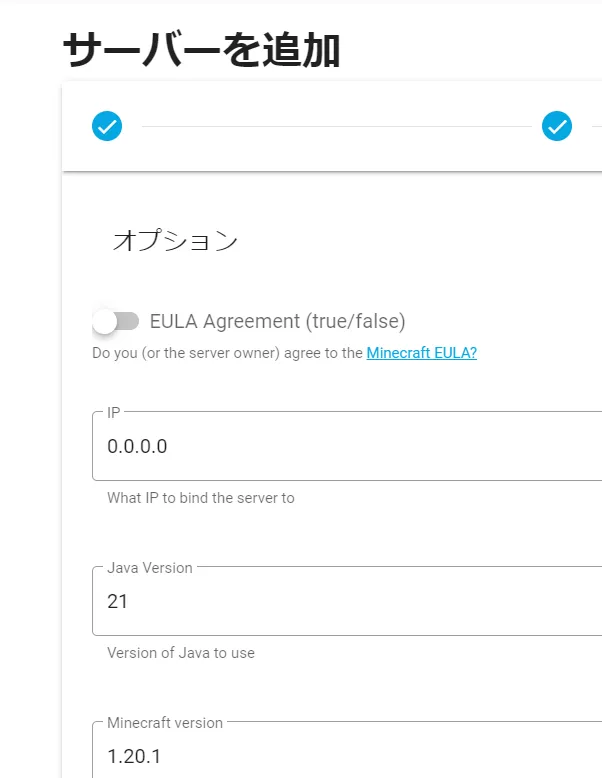サーバー名は自分の好きな名前を入れてください。※複数構築しないなら適当で良いです。