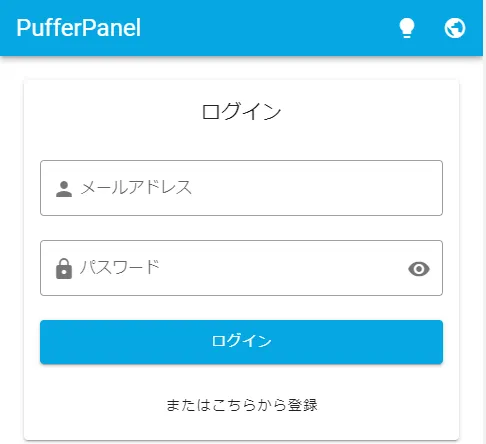 PufferPanelの導入が済んだらログインします。