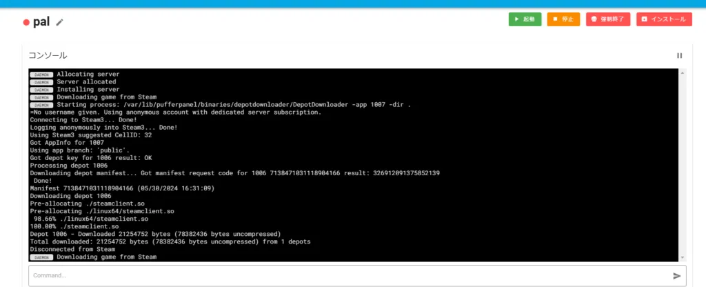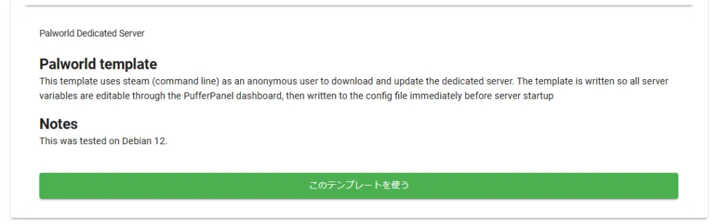 ログインが完了したら、テンプレート一覧よりPalworld用のテンプレートを取得します。