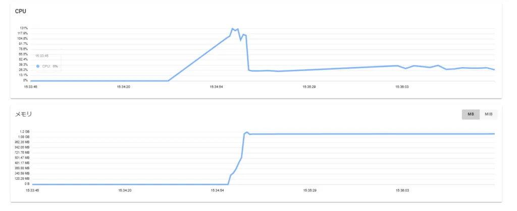 また、インストール最中のサーバーに対する負荷は以下の通りです。