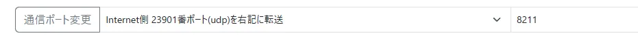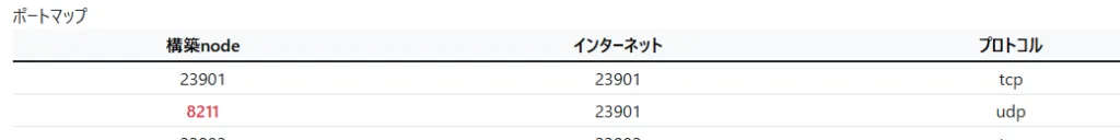 構築したノードではゲームが標準ポートで動いていますので、割り当てられているポート番号から、標準ポートへPortの転送を行います。
