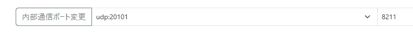 以下の例ではkym gameのパネル画面内で、 UDPの20101に来た通信を 8211番ポートに転送する場合の設定例です。