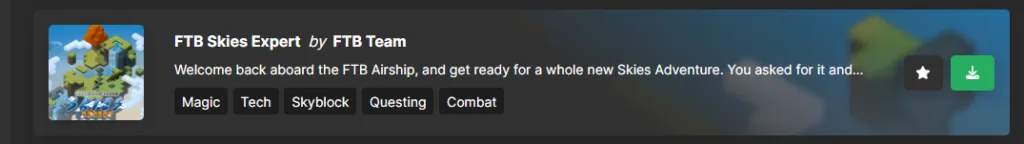 今回は FTB Skies Expertでサーバーを準備しているため、こちらをダウンロードします。