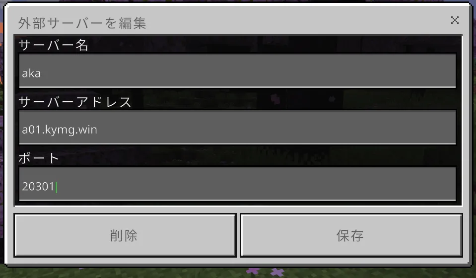 上記画像で入力するサーバー名はパネルボタンに表示されています。