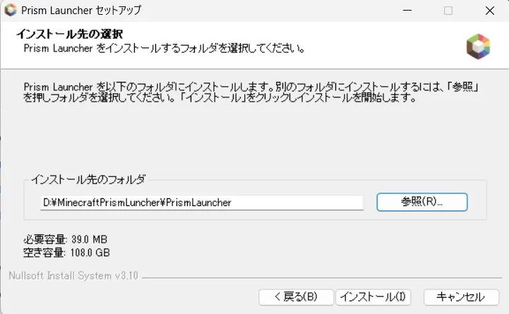 インストール場所は適宜変更してください。