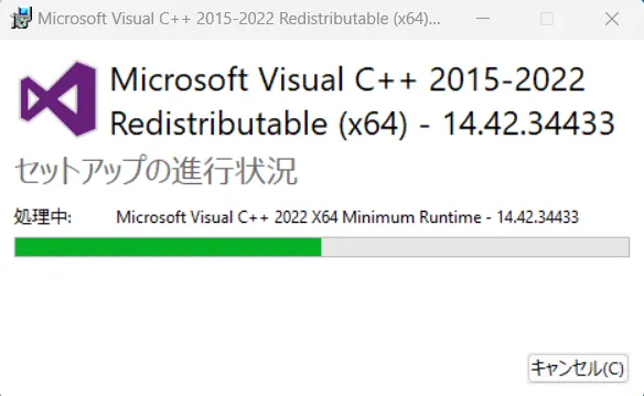 VisualCのランタイムが入っていない場合は続けてインストールします。