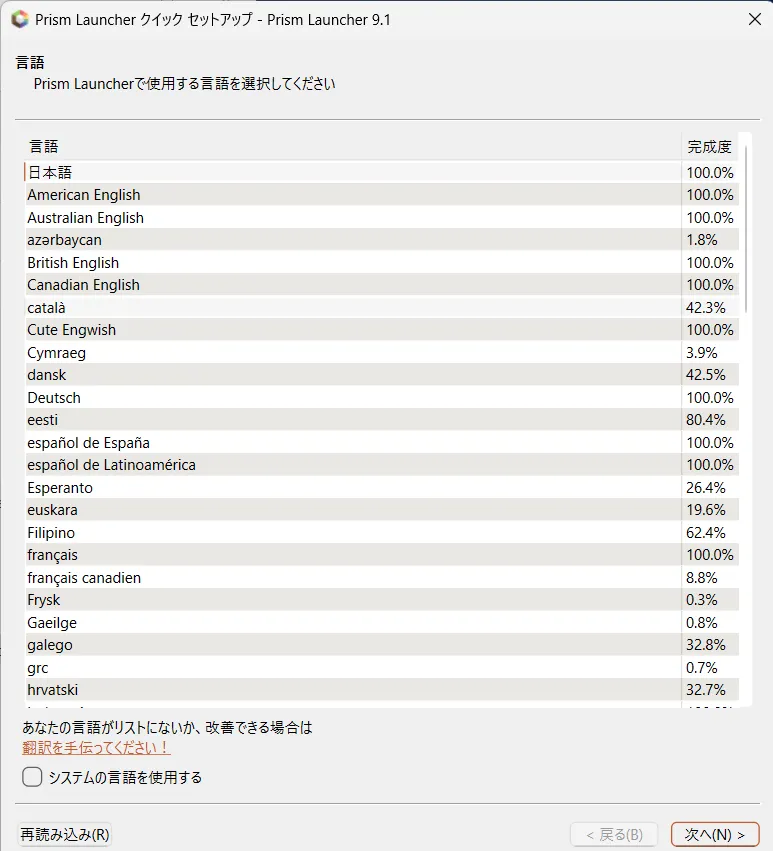 起動したらまずは言語を選びます。