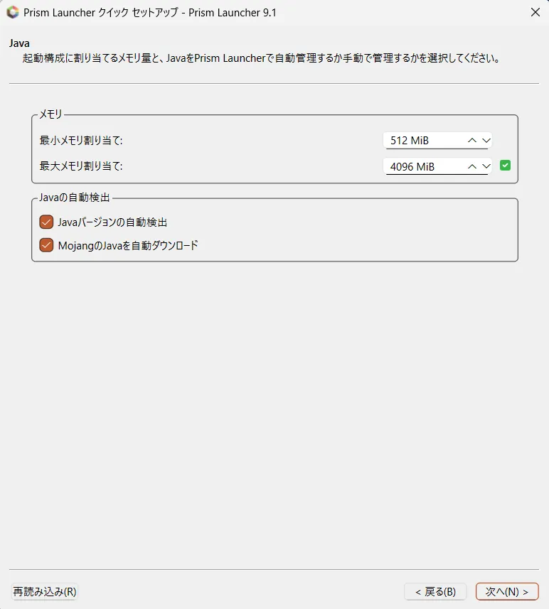 最大メモリは大きめにしておいてください。※8GB推奨