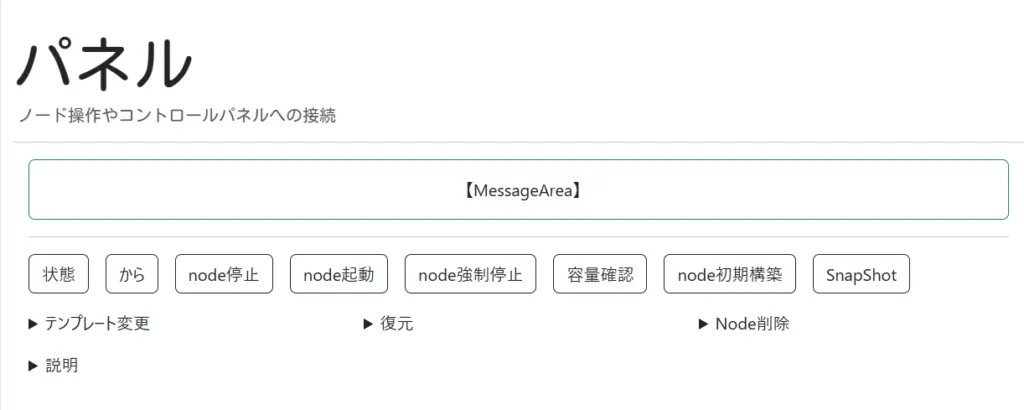 手配が完了した直後はまだnodeが存在しません。手動でnode初期構築ボタンを押して、nodeを立ち上げてください。