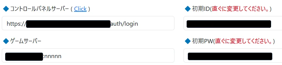 nodeの起動が完了したら画面内のClickリンクを押してください。ゲーム用のコントロールパネルに接続されます。