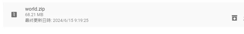 次に、何も考えずに作成した 1.21の環境に対して、この world.zipファイルをアップロードします。