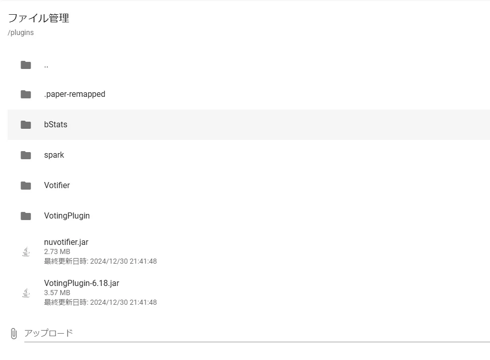 PufferPanelにログイン後プラグインをアップロードします