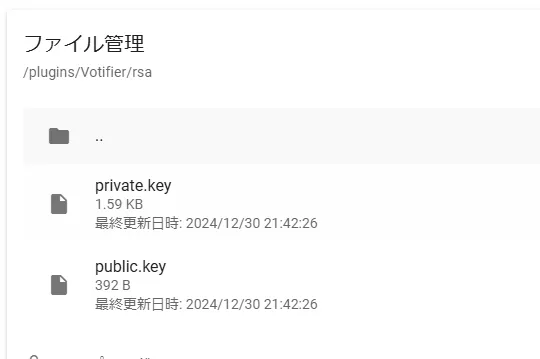 同じフォルダにあるRSAフォルダに入り、中のpublic.keyを確認してください。※private.keyは秘密です。ほかの人に見られないようにしてください。